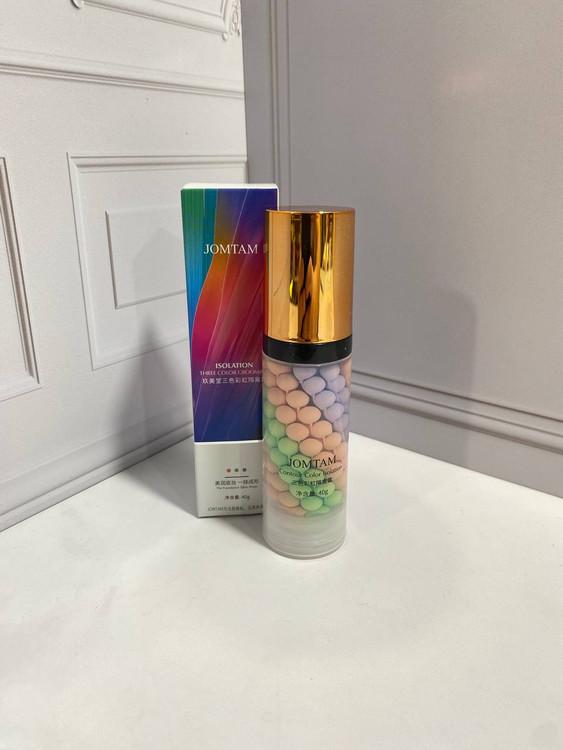 پرایمر سه رنگ جومتام یکی از محصولات مراقبتی و آرایشی است که با داشتن سه رنگ مختلف بیشتر مشکلات ظاهری پوستتان را پوشش میدهد. رنگ های این محصول شامل بنفش ، نارنجی و سبز هستند و هر رنگ، مسئول برطرف کردن عیب و نقص های مشخصی در پوست هستند! برای مثال رنگ سبز این محصول ورم و سرخی جوش و آکنه های روی پوست را پوشش میدهد!