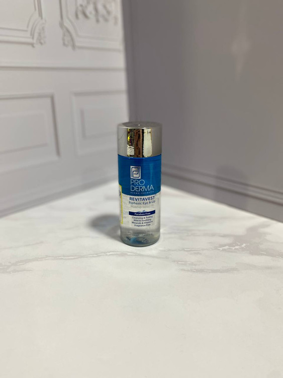 محلول دو فاز پاک کننده آرایش چشم و لب پرودرما، ایده آل برای پاکسازی آرایش