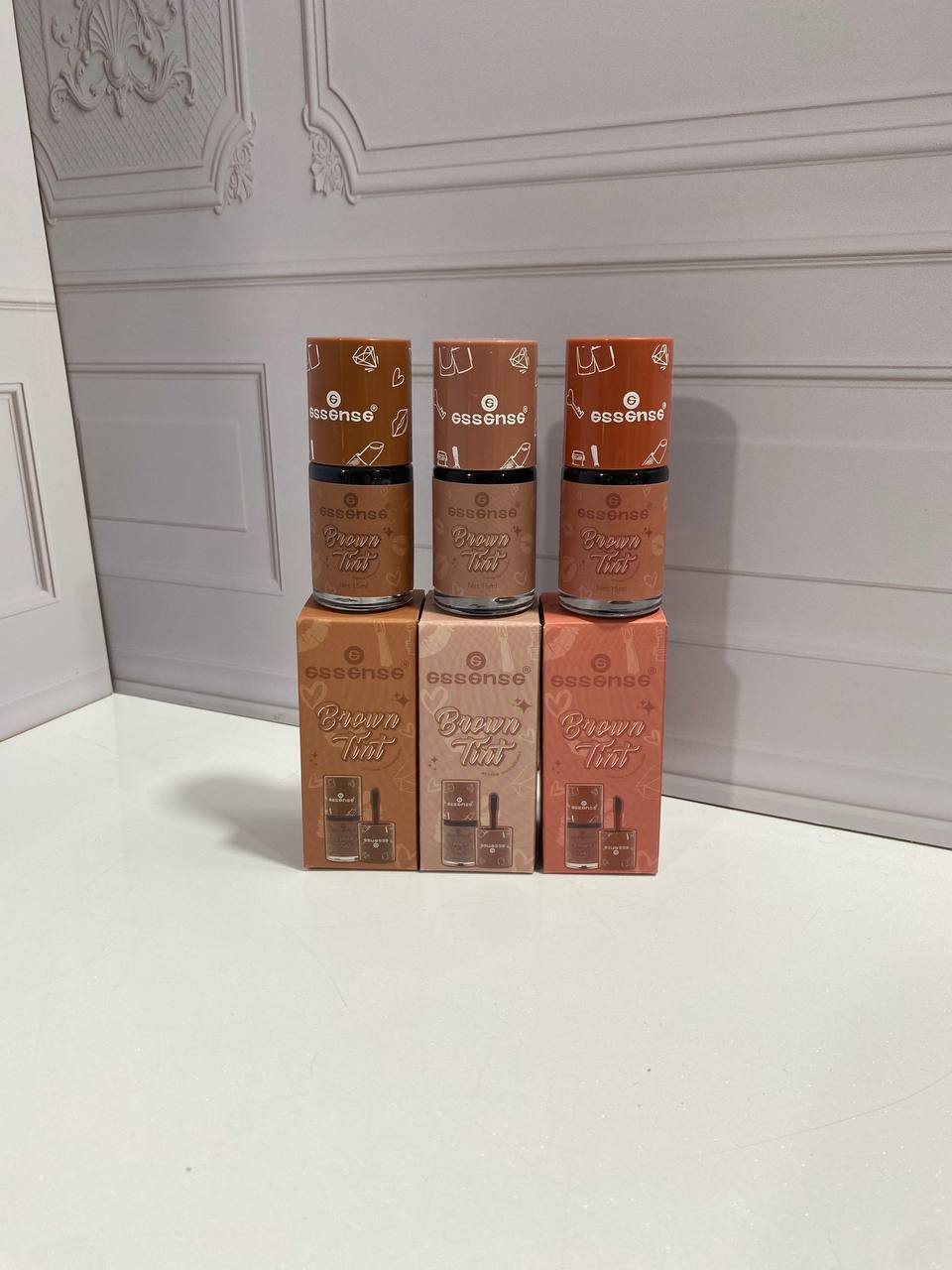 تینت قهوه ای اسنس دارای ۳ رنگ جذاب روی لب رنگاش خیلی قشنگه ماندگاری بالایی داره لب هارو نرم میکنه و اصلا هم پخش نمیشه،