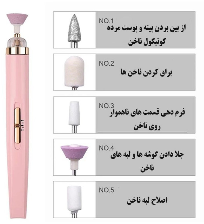 بصورت شارژی کار می کنه و نیاز به برق و باطری ندارهم مانیکور شارژی دارای پنج سری مختلف با کاراریی متفاوت.