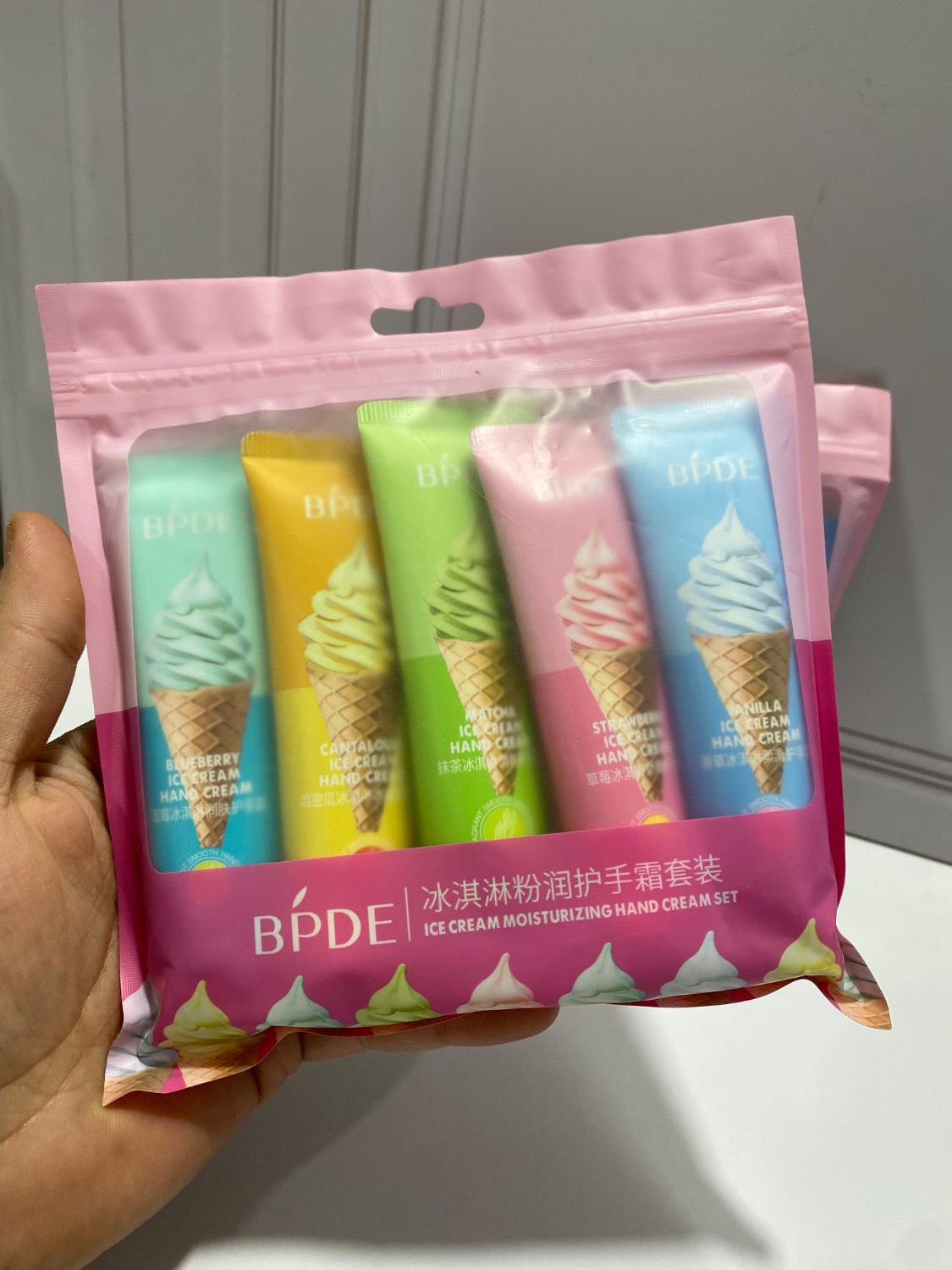 با رایحههای خوشمزه و طراحی بامزه شامل ۵ عدد کرم دست آبرسان و نرمکننده پوست دست بافت سبک و جذب سریع مناسب استفاده روزانه و داخل کیف