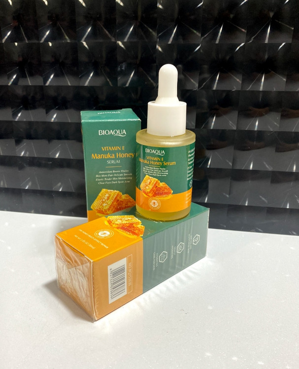 سرم صورت بیوآکوا با بهره گیری از عصاره عسل مانوکا و ویتامین E ، پوست را آبرسانی و مرطوب کرده و با رفع کدری، لک و تیرگی های پوست سبب روشن و سفید تر شدن آن می شود. این سرم برای پوست صورت کشسانی پوست را افزایش داده و خشکی، التهاب و قرمزی پوست را رفع می کند. همچنین، نقش موثری در تقویت، ترمیم و جلوگیری از پیری پوست دارد.