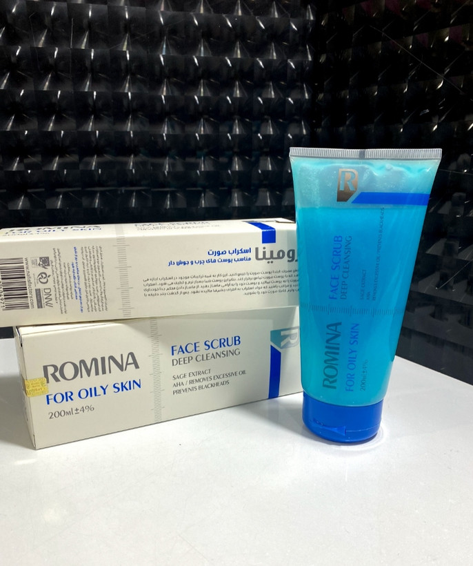 اسکراب صورت رومینا مناسب پوست های چرب و جوش دار حجم 200 میلی لیتر
