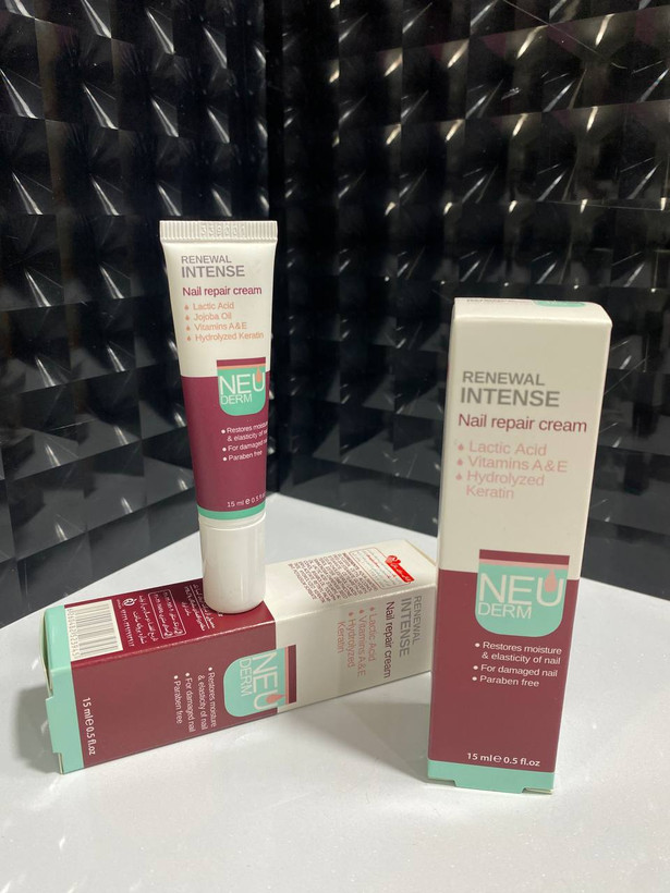 کرم تقویت کننده و مراقبت از ناخن رینوال اینتنس نئودرم با استفاده از ویژگیهای کراتین هیدرولیز شده، روغن جوجوبا، اسید لاکتیک و ویتامین A و E، پوست را تغذیه کرده، خشکی و حساسیت ناخن و کوتیکول (پوست اطراف ناخن) را از بین میبرد. این کرم، پوست دور ناخن را نرم و مرطوب کرده و از پوسته پوسته شدن کوتیکول جلوگیری میکند.