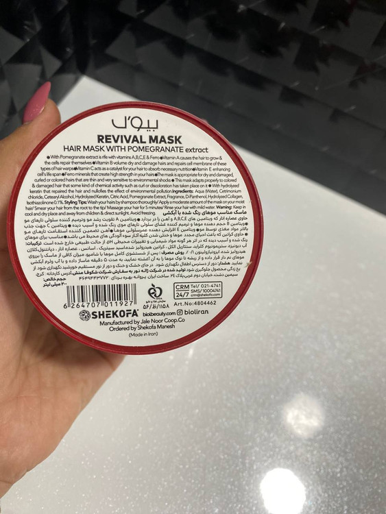 ماسک مو کاسه ای بیول با عصاره انار مناسب موهای رنگ شده می باشد این ماسک حاوی عصاره انار